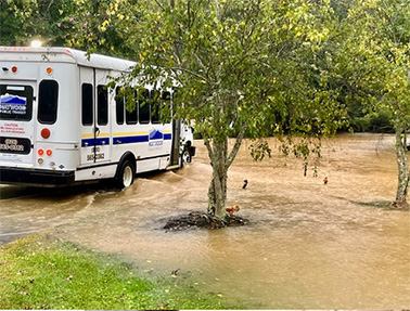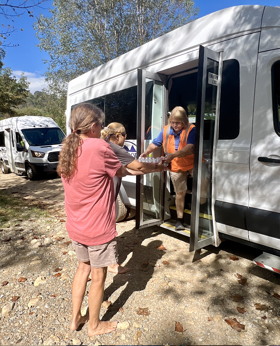 Mountain Projects mobilized quickly during and after the flooding from Hurricane Helene, beginning pre-dawn wellness and evacuation calls on Sept. 27, 2024, and using Haywood Public Transit vans to reach vulnerable residents, including seniors evacuated from long-term care facilities. With federal assistance slow to arrive, the nonprofit stepped in as a “hyperlocal FEMA,” placing evacuees in hotels and motels, transporting residents from flood-prone areas and nursing homes, and coordinating emergency supplies across Haywood and Jackson counties.